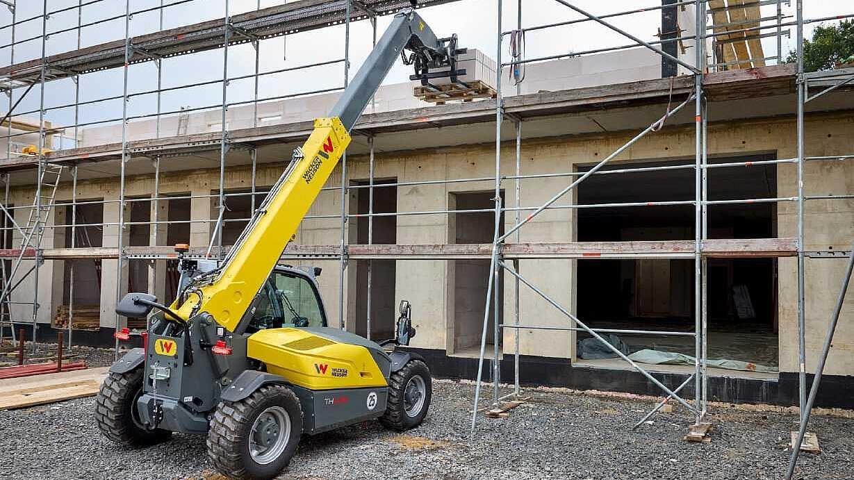 The new compact Wacker Neuson TH625 telehandler guarantees maximum efficiency in everyday work thanks to its combination of a high payload of 2.5 tons and a lifting height of six meters. It is available with a 45 kW or 55 kW engine and it enables fast and high material handling. Due to its low dimensions and good maneuverability, it can also be used in confined spaces. The cabin is both ergonomically and clearly designed and offers ideal all-round visibility, which positively affects both safety and efficiency. The electronically regulated drive system with various operating modes enables the demand-oriented application of the machine.