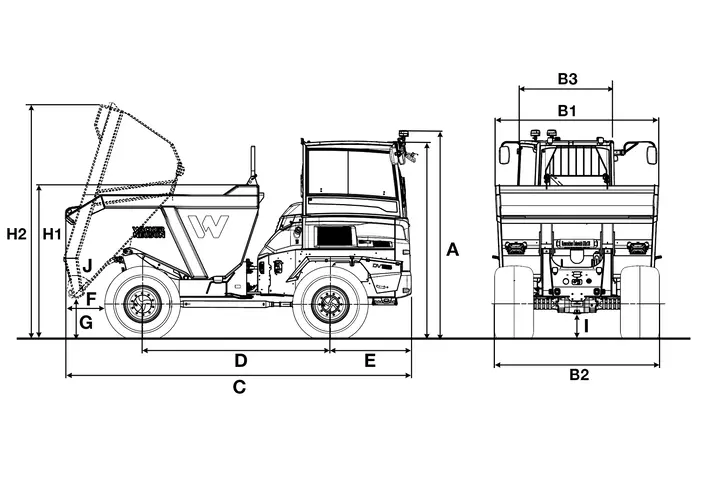 B1 Width of skip 2,519 mm