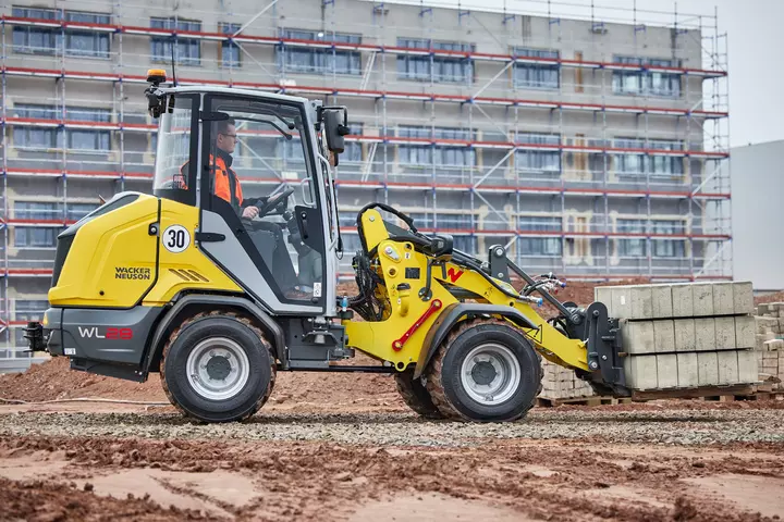 Szűkek a helyek, és súlyos terheket kell szállítani: a WL28 homlokrakodó ideális felhasználási területe. Problémák nélkül megbirkózik az akár 1,6 t súlyú, burkolatköveket és egyéb árukat szállító raklapokkal. A különböző menetmódokkal rendelkező, elektronikus vezérlésű hajtómű lehetővé teszi, hogy különösen hatékonyan lehessen dolgozni a géppel. Az alacsonyra állított előkocsi eközben a tökéletes áttekinthetőségről és a nagy terhelhetőségről gondoskodik. A gép a jó látási viszonyok által különösen biztonságos használatot kínál. Ezenkívül a WL28 homlokrakodót alacsony üzemi tömege miatt utánfutón is lehet szállítani.